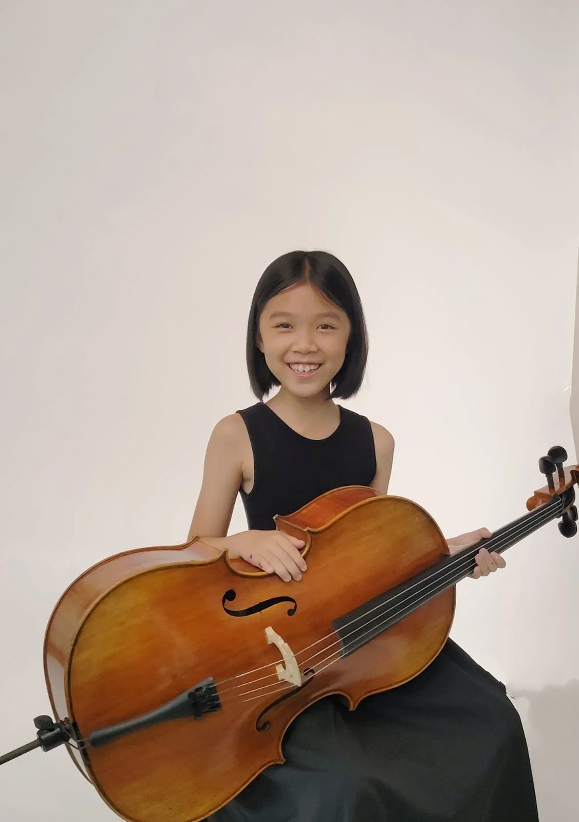 Tsang Lok Yan currently aged 9 is currently a Year 5 student at Kingston International School. She started learning cello with Ms Yi Chun Chen at the age of 4. Lok Yan has been doing many musical activities. She is now Grade 7 in ABRSM cello. She is also a member of the Pacific Cello Orchestra since 2023.